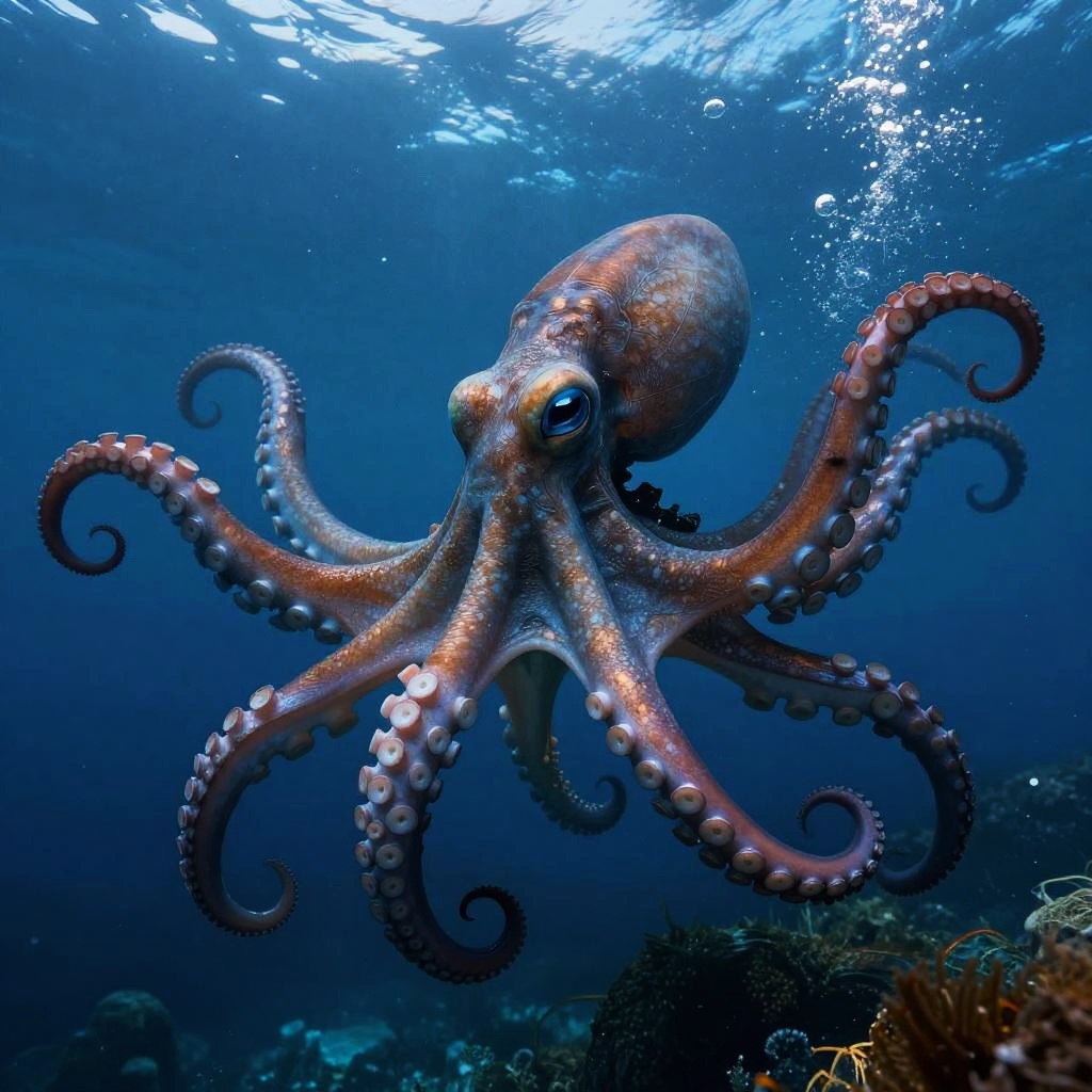 Underwater Octopus in Oceanic Scene
