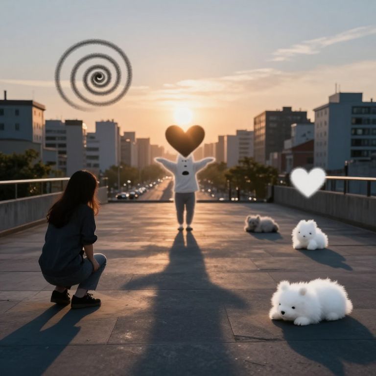 A city where every shadow shapeshifts into the day’s most common emotion shape — spirals of fear during mornings, wobbly hearts at noon, and fluffy peace-animals at dusk.