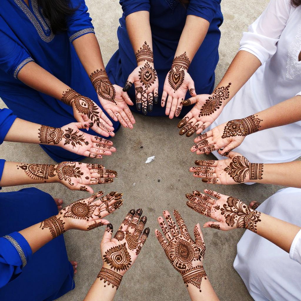 Vibrant Henna Adorned Hands Circle