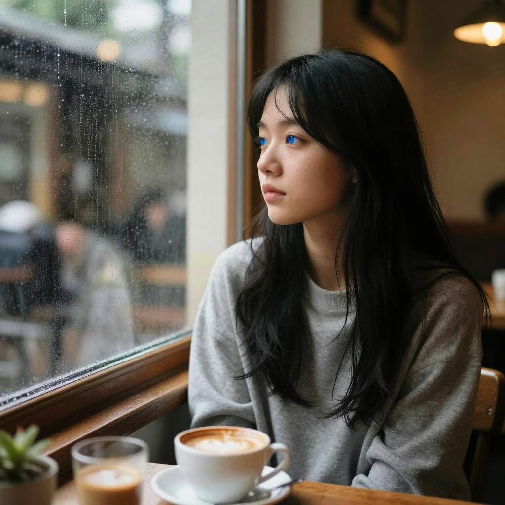 Girl in Moonlit Dark Room