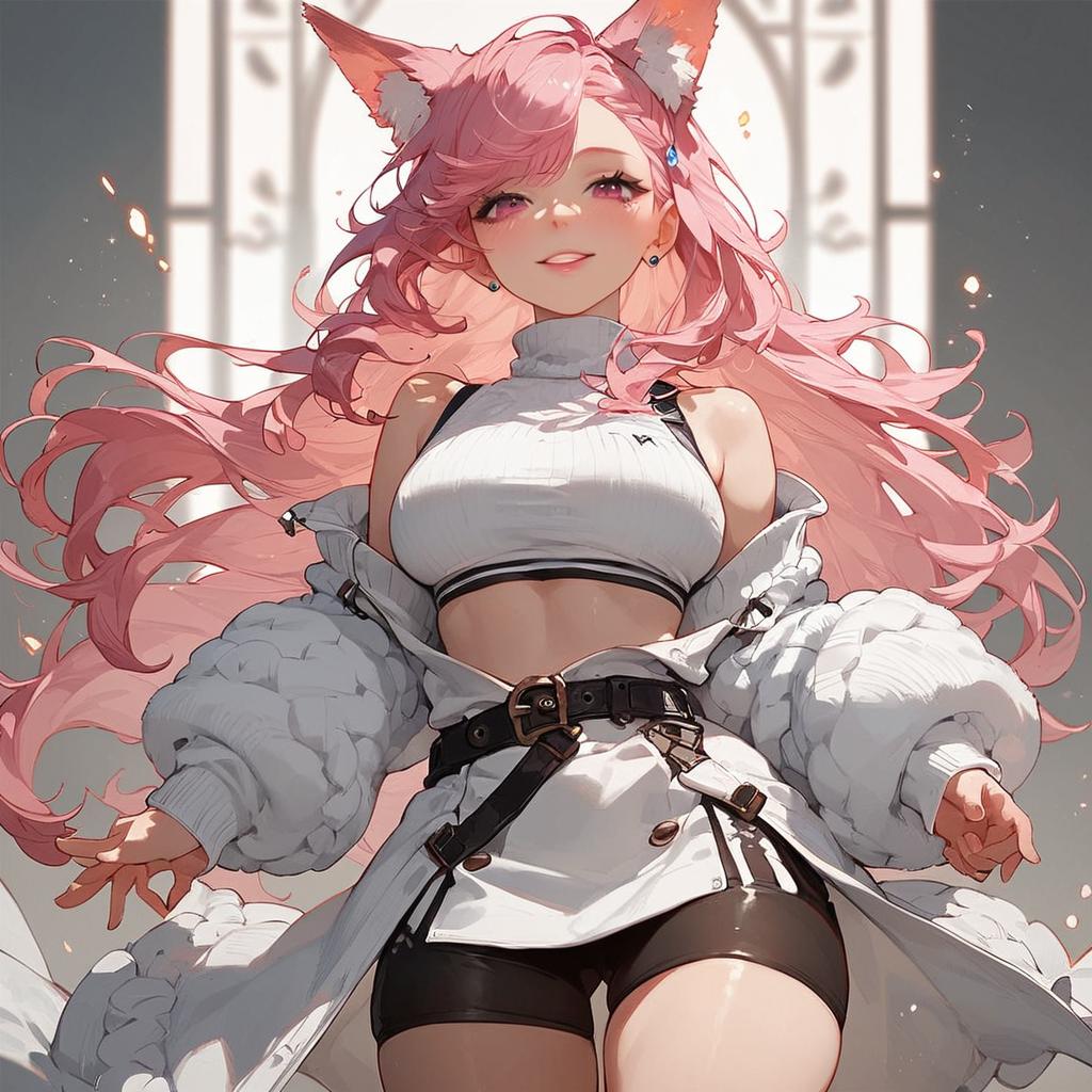 Anime Fox Girl with Long Pink Hair