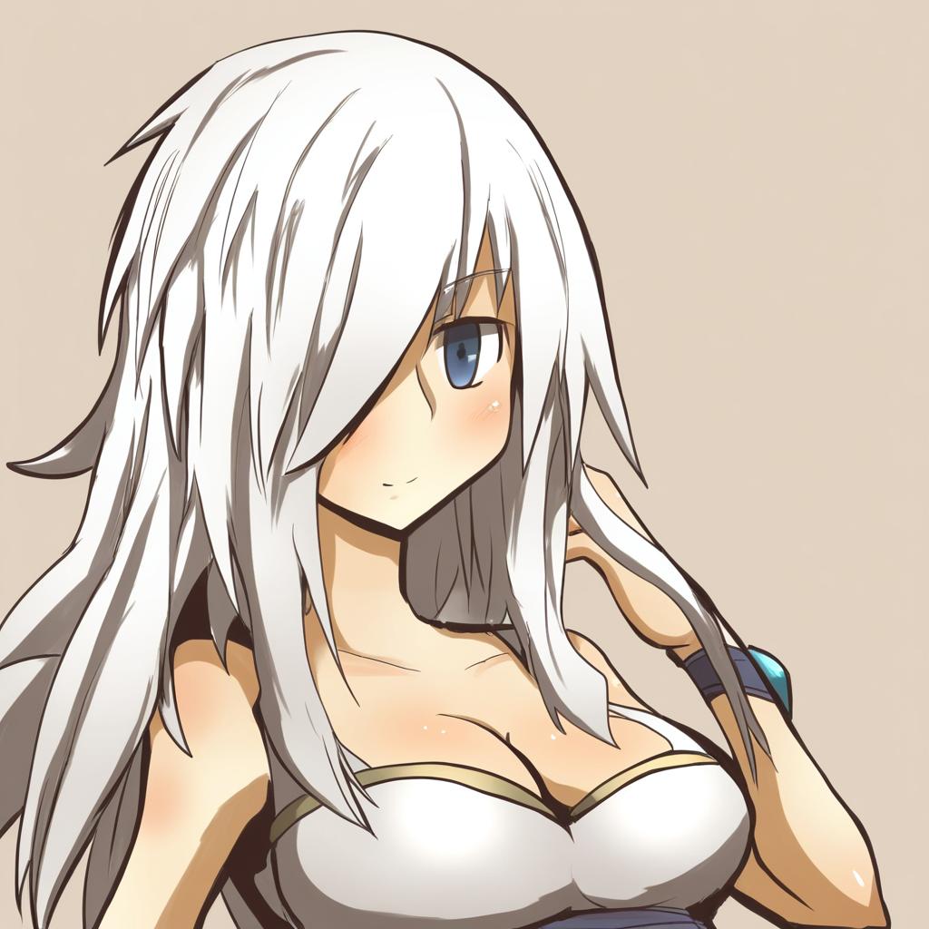 Ashe (league of legends), league of legends, 1girl, blue eyes, long hair, white hair, large breasts, medium breasts, cleavage, by artist asyura kumo, leet
