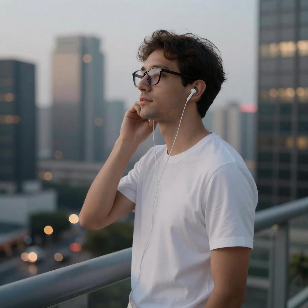 3D cinematic film, (32yo synthwave DJ:1.3) neon-lit headphones, angular sunglasses, cyberpunk jacket with glowing trim (caricature:0.2), neon-soaked Lagos rooftop after rain with palm silhouettes, oil drums, distant shipping cranes and puddles reflecting multicolored LED signage, electric, hopeful, defiant, smoke haze, tungsten practicals, shallow depth of field, creamy bokeh, anamorphic 50mm, Rembrandt lighting, dramatic rim light, warm backlight, volumetric light beams, subtle lens flares, cinematic color grading, film grain, photoreal, professional, UHD 4k, HDR, subdued palette, storytelling portrait, soft vignette