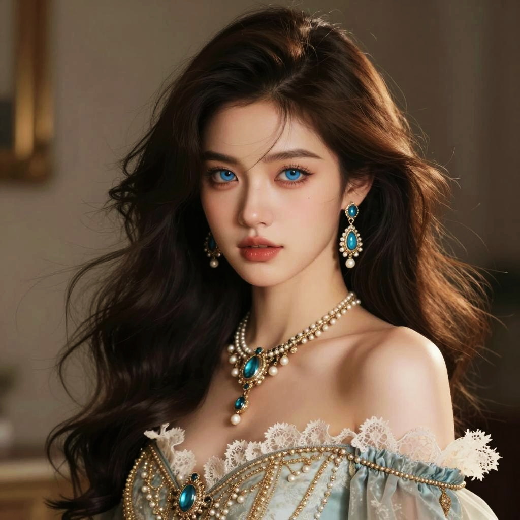 Woman in Turquoise and Gold Costume with Jeweled Tiara