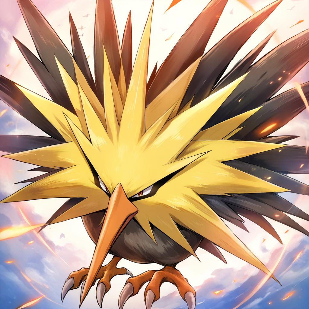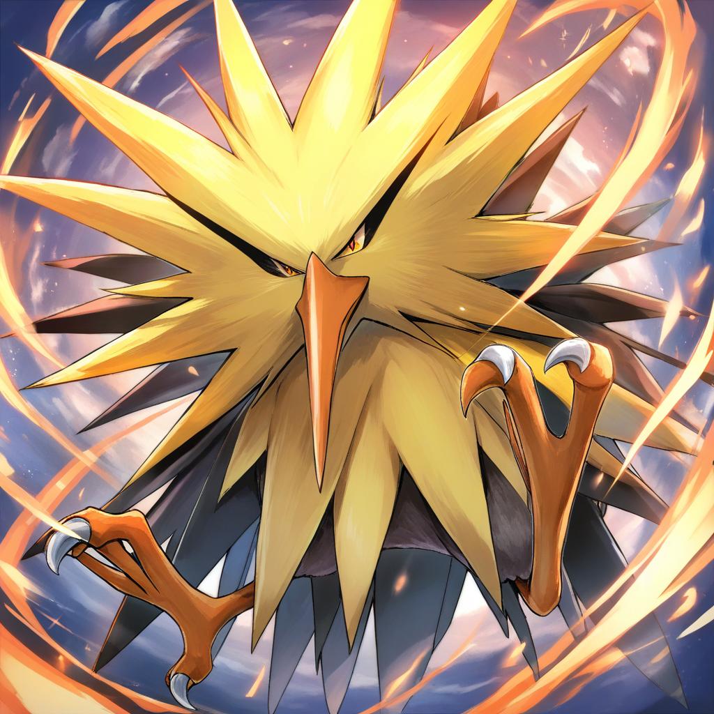 Zapdos, pokemon, no humans, pokemon (creature), bird, claws, by artist koyuki (kotatsu358), animagine
