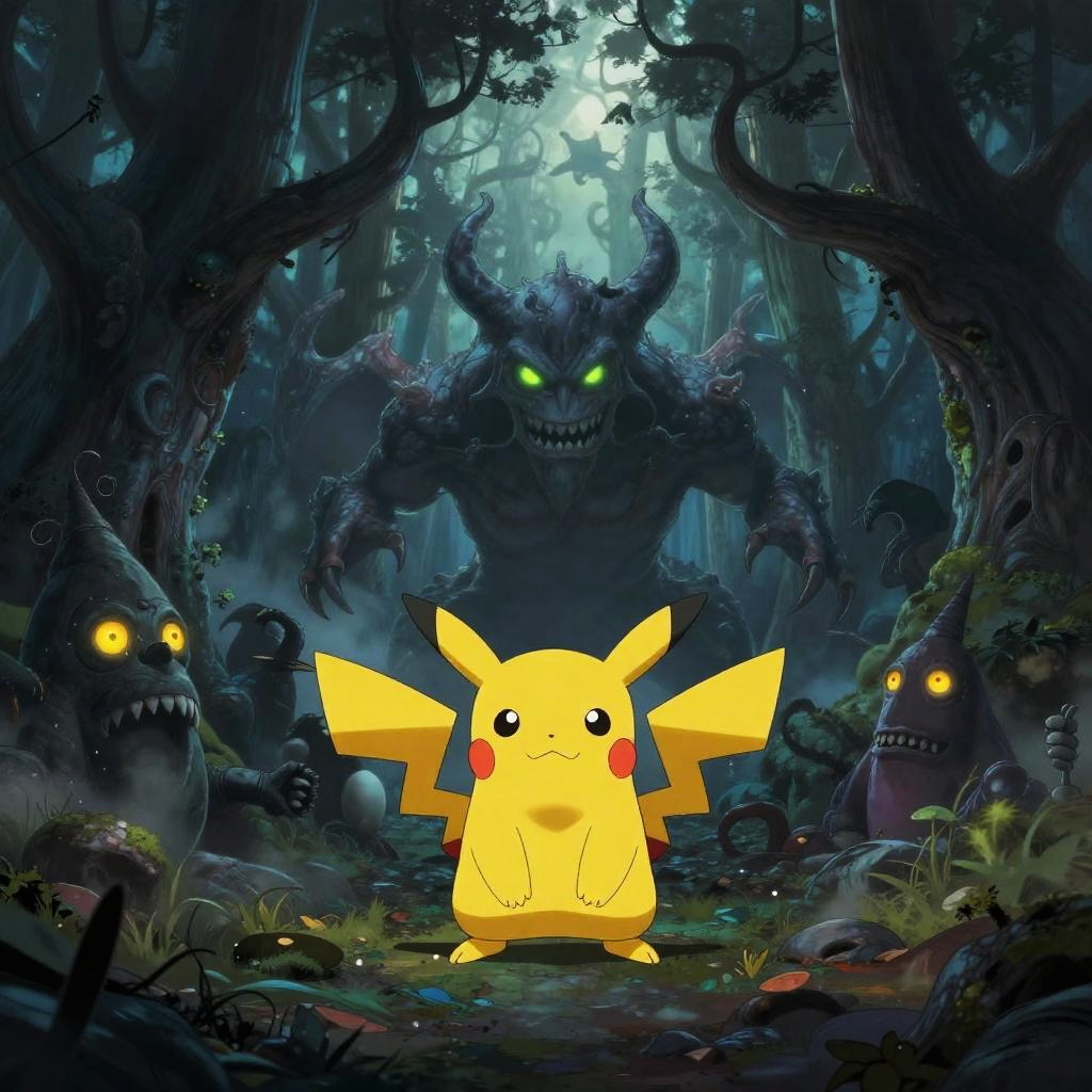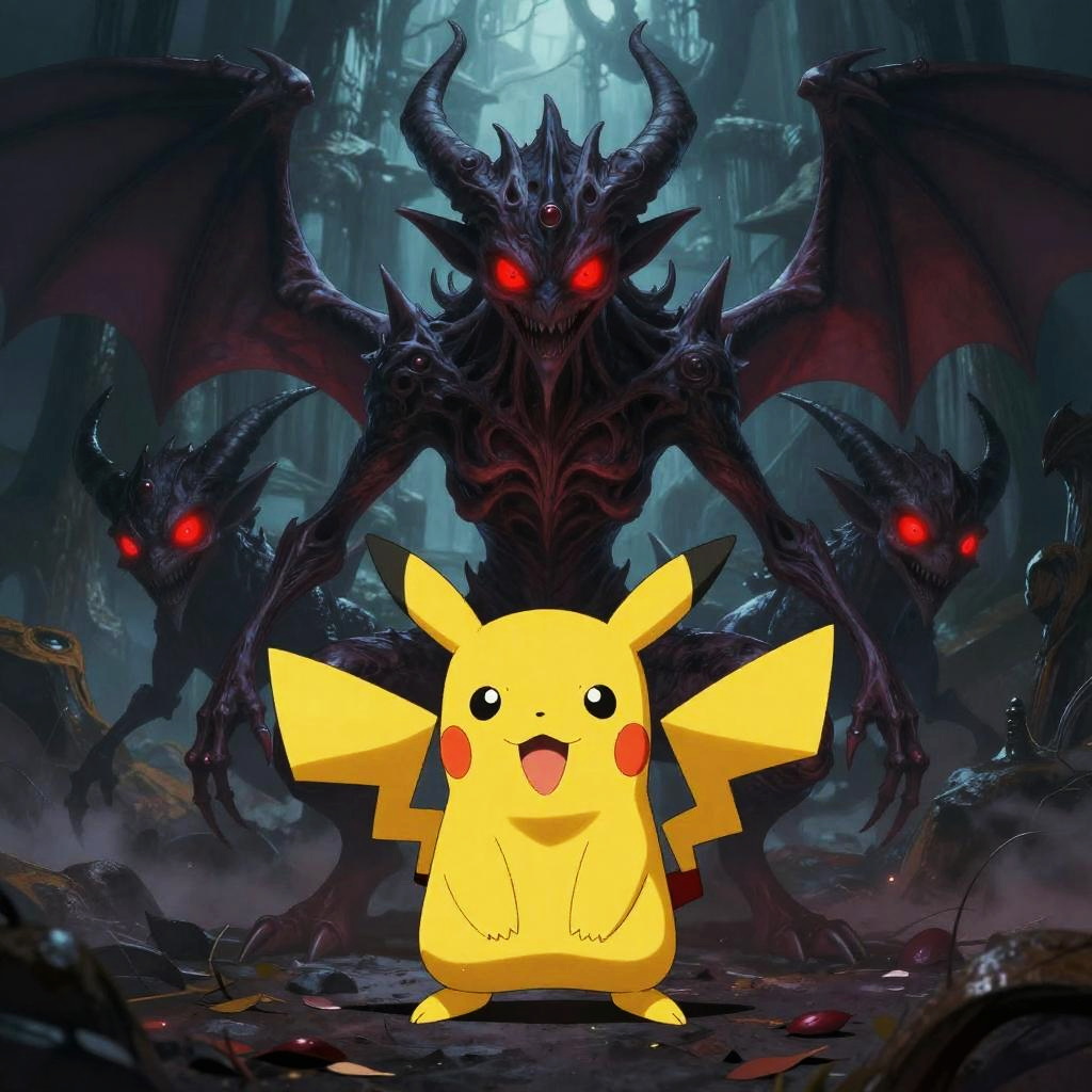 Are Pokemon demonic entities with fiery hellish landscapes, smoky backgrounds, demonic horns and wings, intense glowing runes, epic fantasy style, highly detailed and ominous artwork.