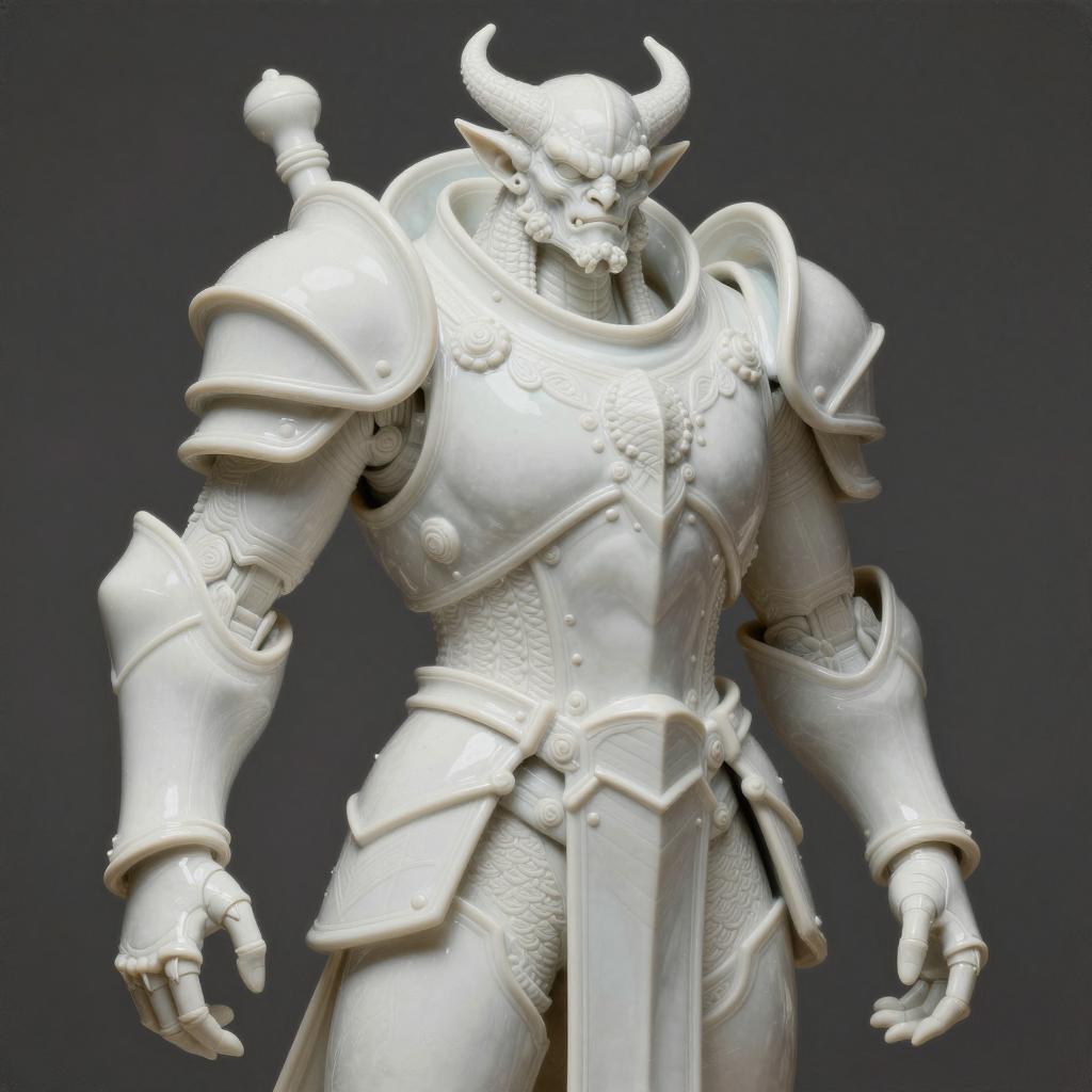 Ceramics highly detailed half body illustration robotic demon, warforged, fiend, light armor, clear focus, illustration, d&d, art by artgerm and greg rutkowski and alphonse mucha, drawn by j Scott Campbell, painted by artgerm, realistic digital painting, cinematic lighting, Christmas,