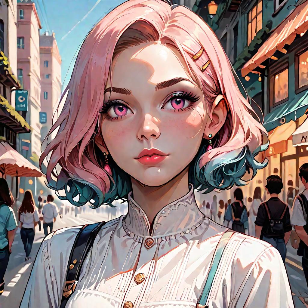 Score_9, score_8_up, score_7_up, sclt woman, bust shot, symmetrical, upperbody closeup, walking in the city, wearing refined clothes, looking at the viewer, loose hair