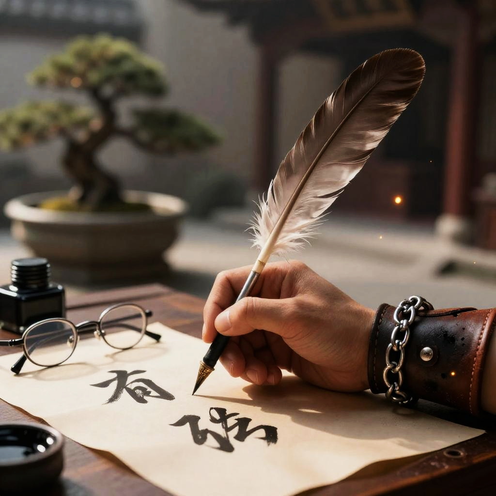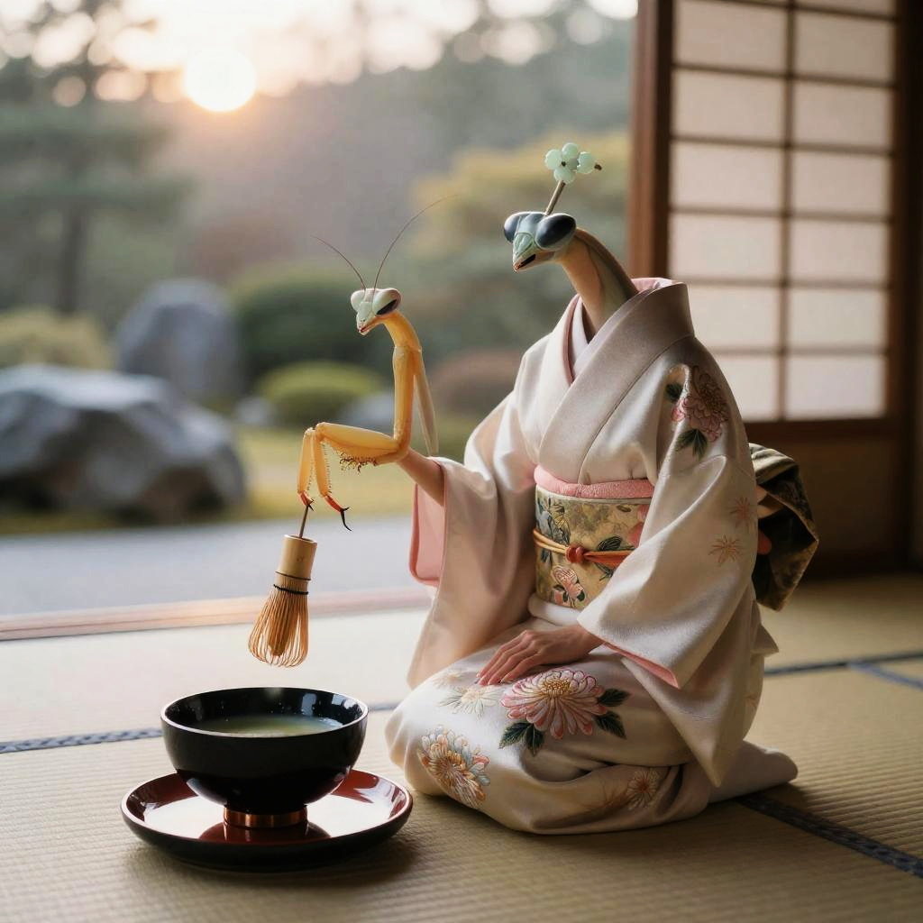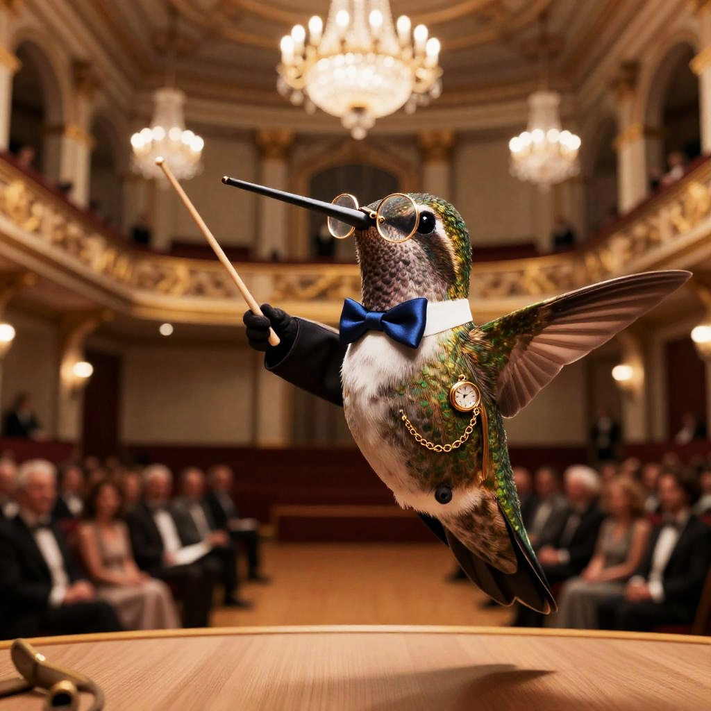 Hummingbird Minstrel in Moonlit Teahouse Garden