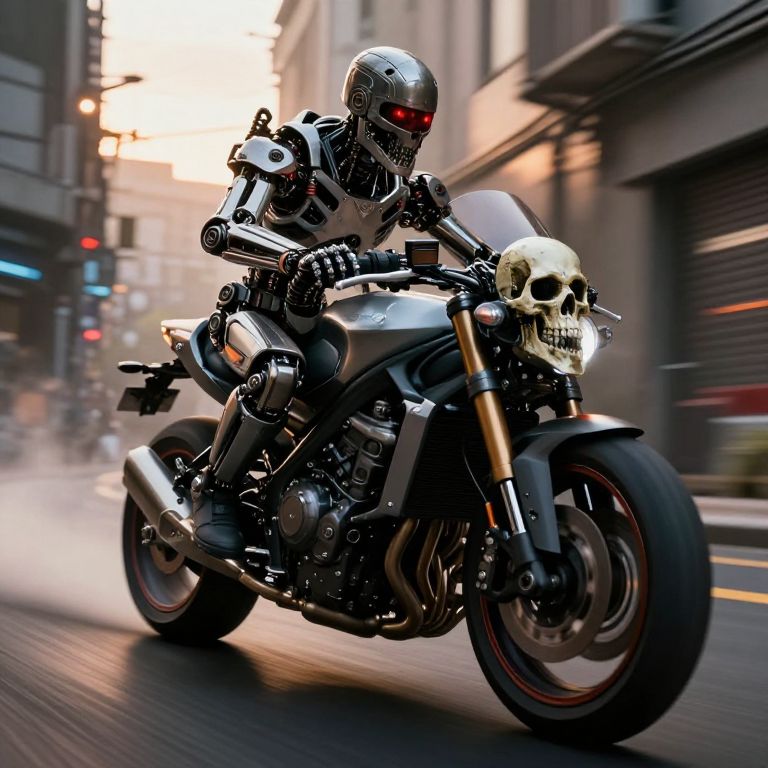 Terminator Endoskeleton on Cyberdyne Superbike