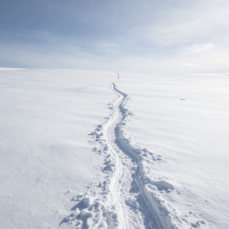 Trails of solitude etched in pristine snow whisper tales of unseen wanderers, their fleeting presence a poignant reminder of transience and the enduring mystery of paths untold.