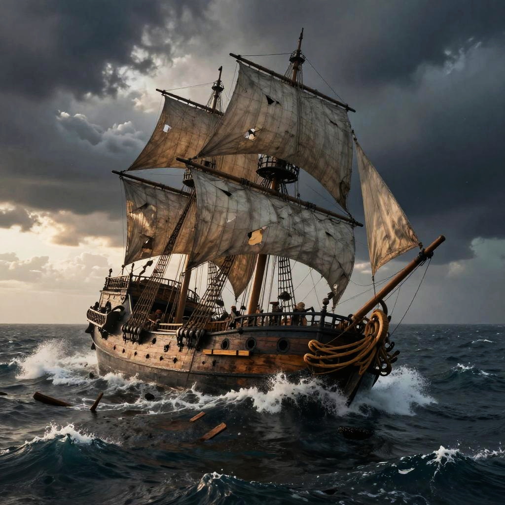 Pirate Ship Sinking in Stormy Sea