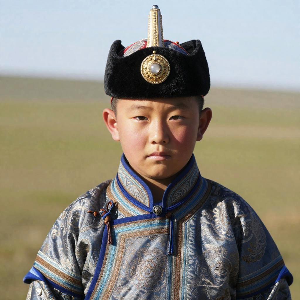 Close-Up of Mongolian Child in Traditional Dress