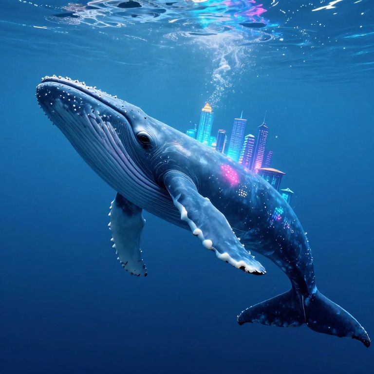 A colossal whale, its body cloaked in ethereal blue hues, cradles a vibrant, glowing city within its hollowed-out interior, defying the boundaries of nature and imagination.
