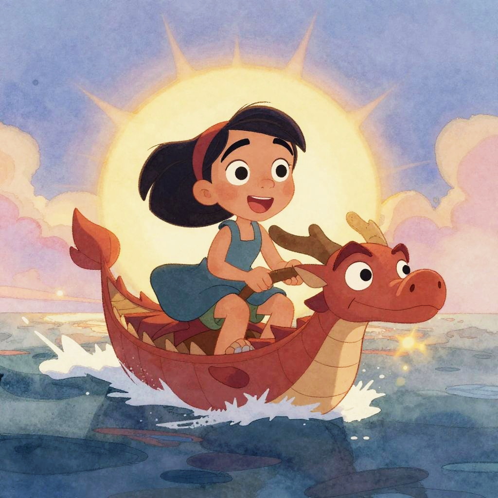 A vibrant emotional animation key shot of Rapunzel riding a floating lantern platform, in the style of Pixar, Disney concept art watercolor illustration by Mandy Jurgens, pastel color palette, bloom effect, dramatic lighting