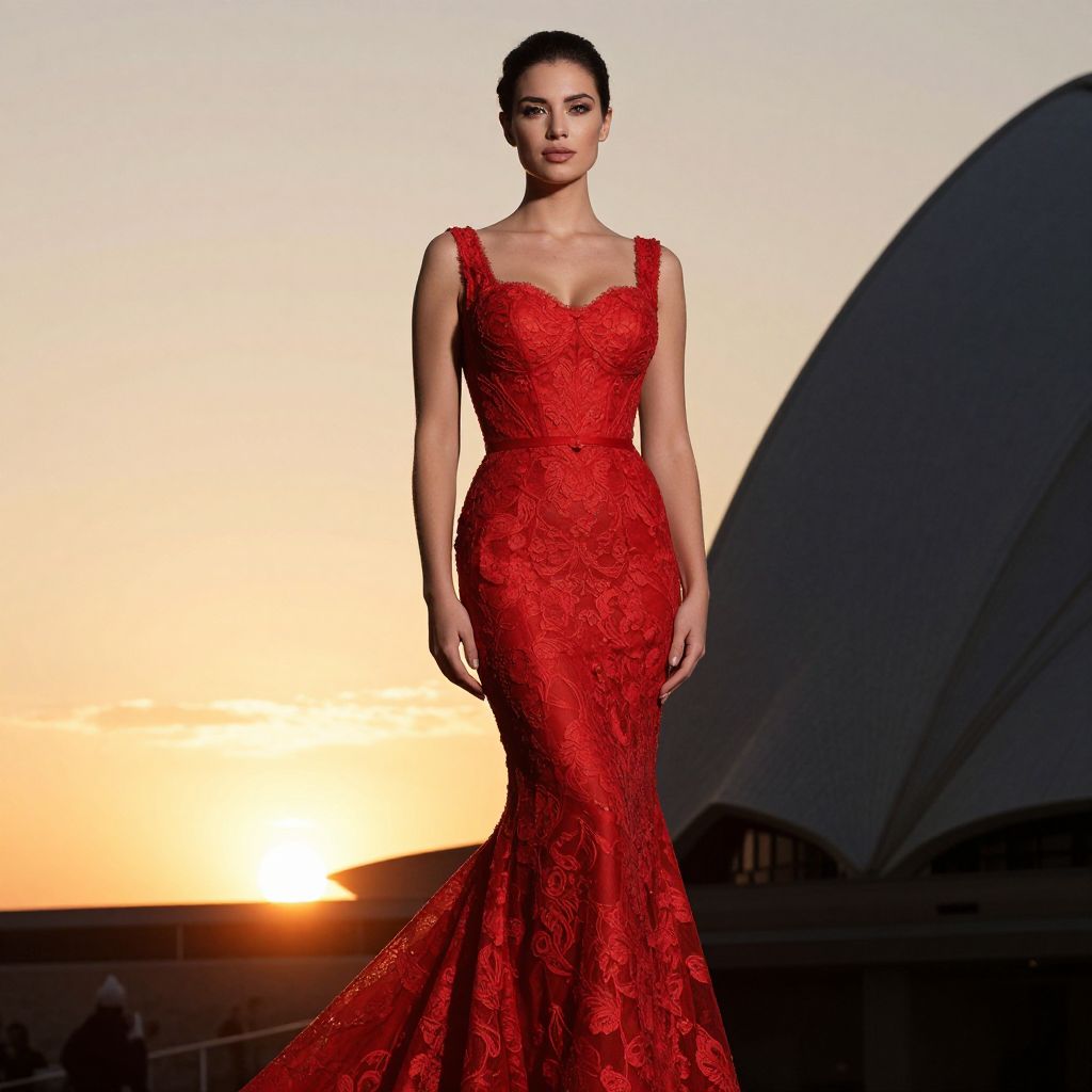 Elegant Woman in Red Lace Gown