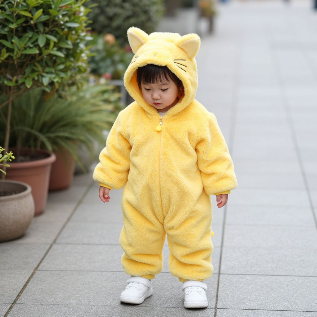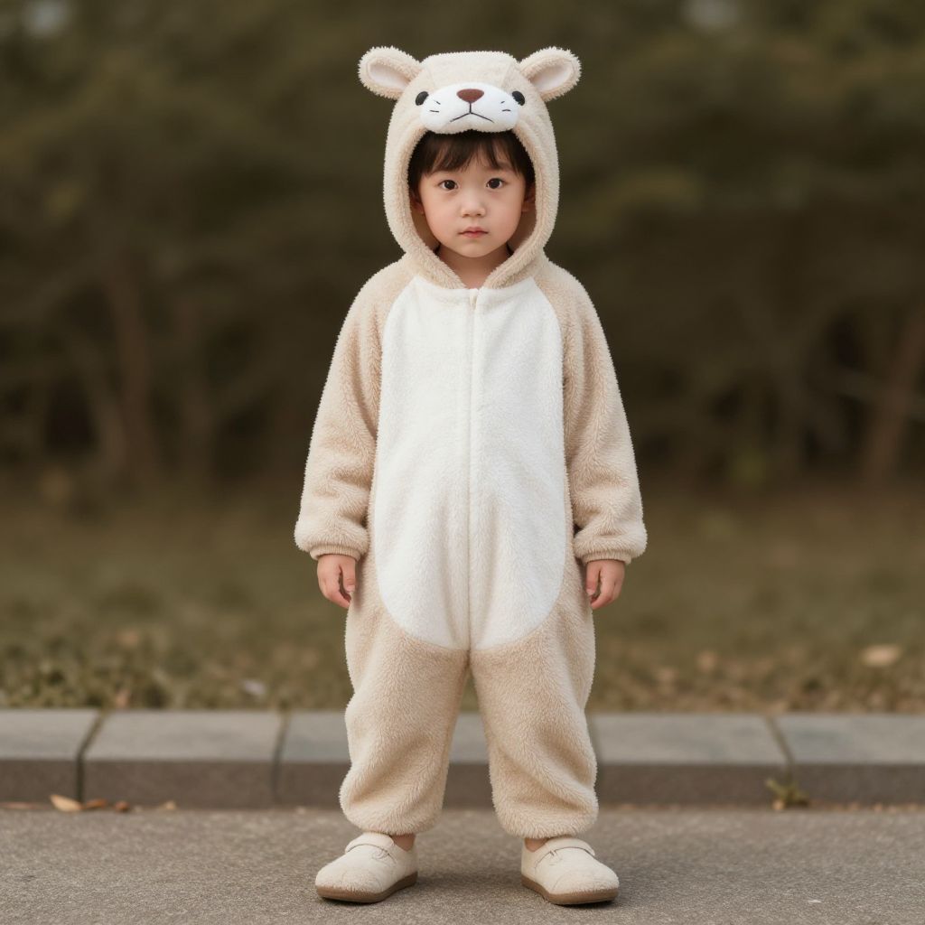 "teletubbies costume, solo, gloves, cosplay, standing, brown hair, male focus, white gloves, looking at viewer, kigurumi, full body, 1boy, closed mouth, realistic Realistic photo of casual sexy person with pretty face"