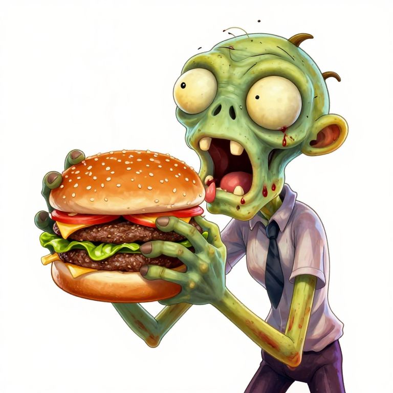 Playful Zombie Eating Juicy Burger