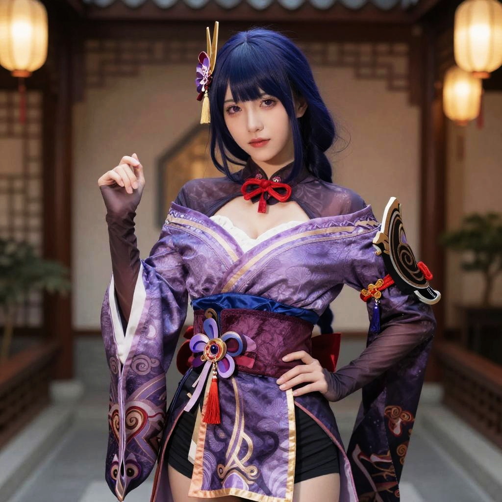 Raiden Shogun Maid Outfit, woman in a traditional chinese costume posing for a picture