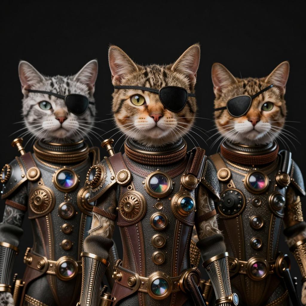 Noteworthy old woman, portrait, huge strange hair plaited with silver, future glasses, blue lipstick, wearing black future armour, oversized, symmetrical, f50 lens, in the style of Guy Bourdin, infront of cabin in suburbs, holding ginger cat mixed with dog, silver eyes.,