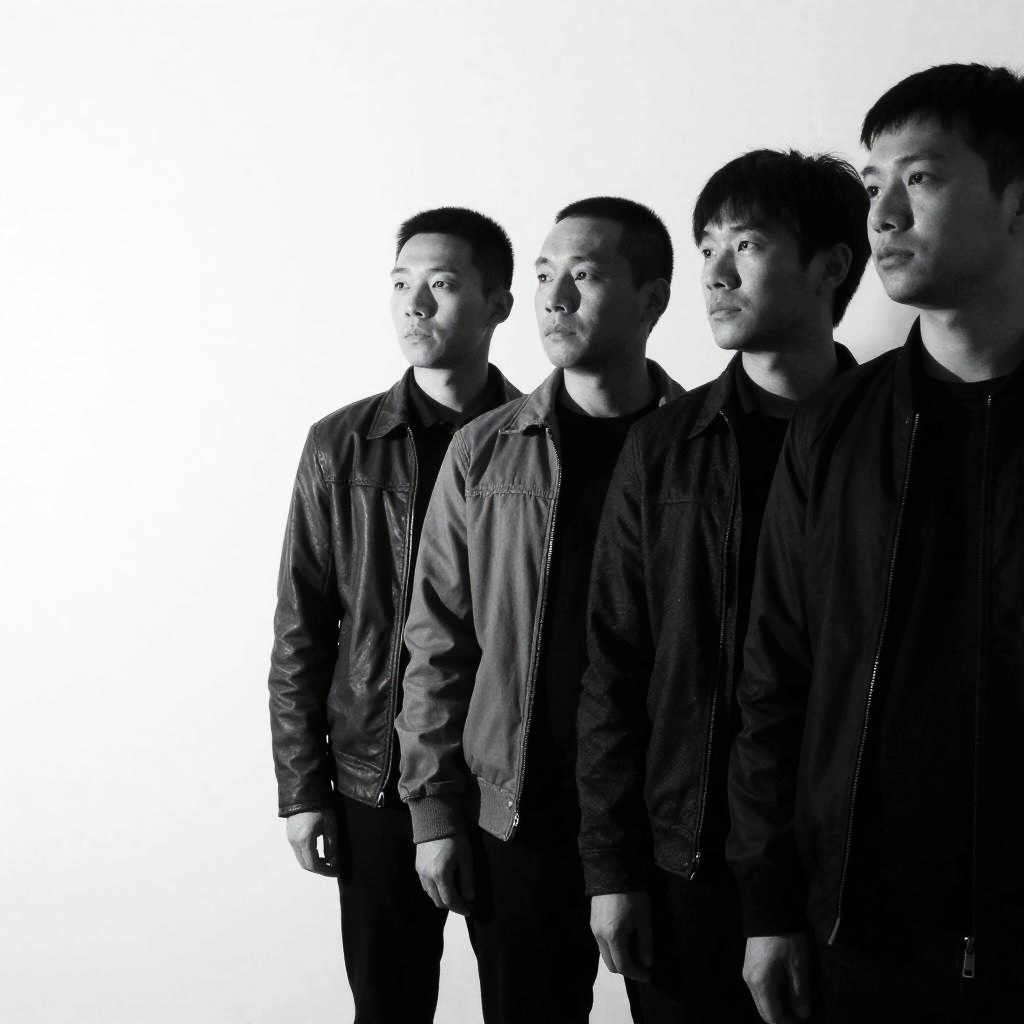 Photograph of a young man in a dark gray beanie, jacket, and black shirt. He sits in a dimly lit environment, looking down with a focused expression. His hands are clasped in front of him. Background is completely black.