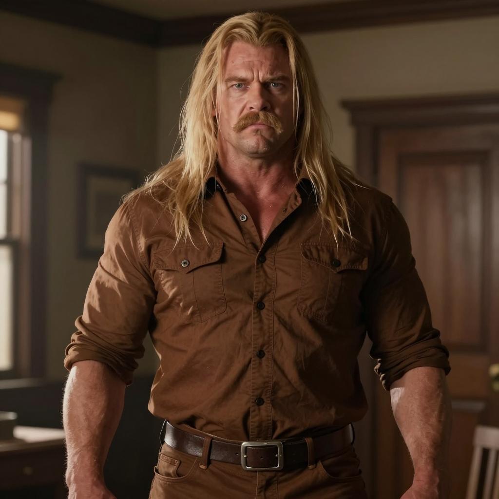 Western Man with Large Golden Mustache