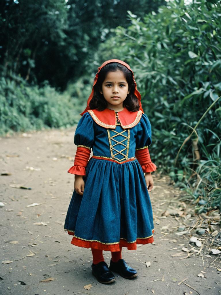 Child in Rosita Costume, photorealistic outdoor portrait, daylight