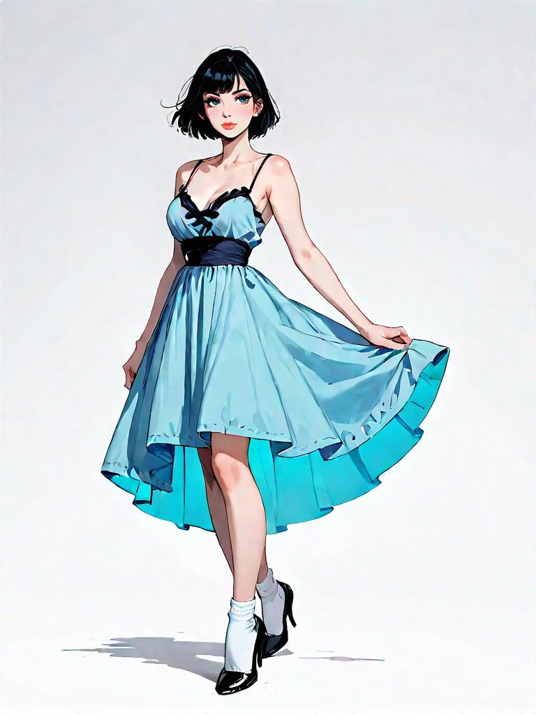 1girl, source_comics, realistic face, full body shot, Woman, bohemian chic, white lace romper with long flared sleeves, deep v-neck with lace-up detail, scalloped hem, black ankle boots, minimalist silver ring, posing in a simple studio setting with a white floor and wall.