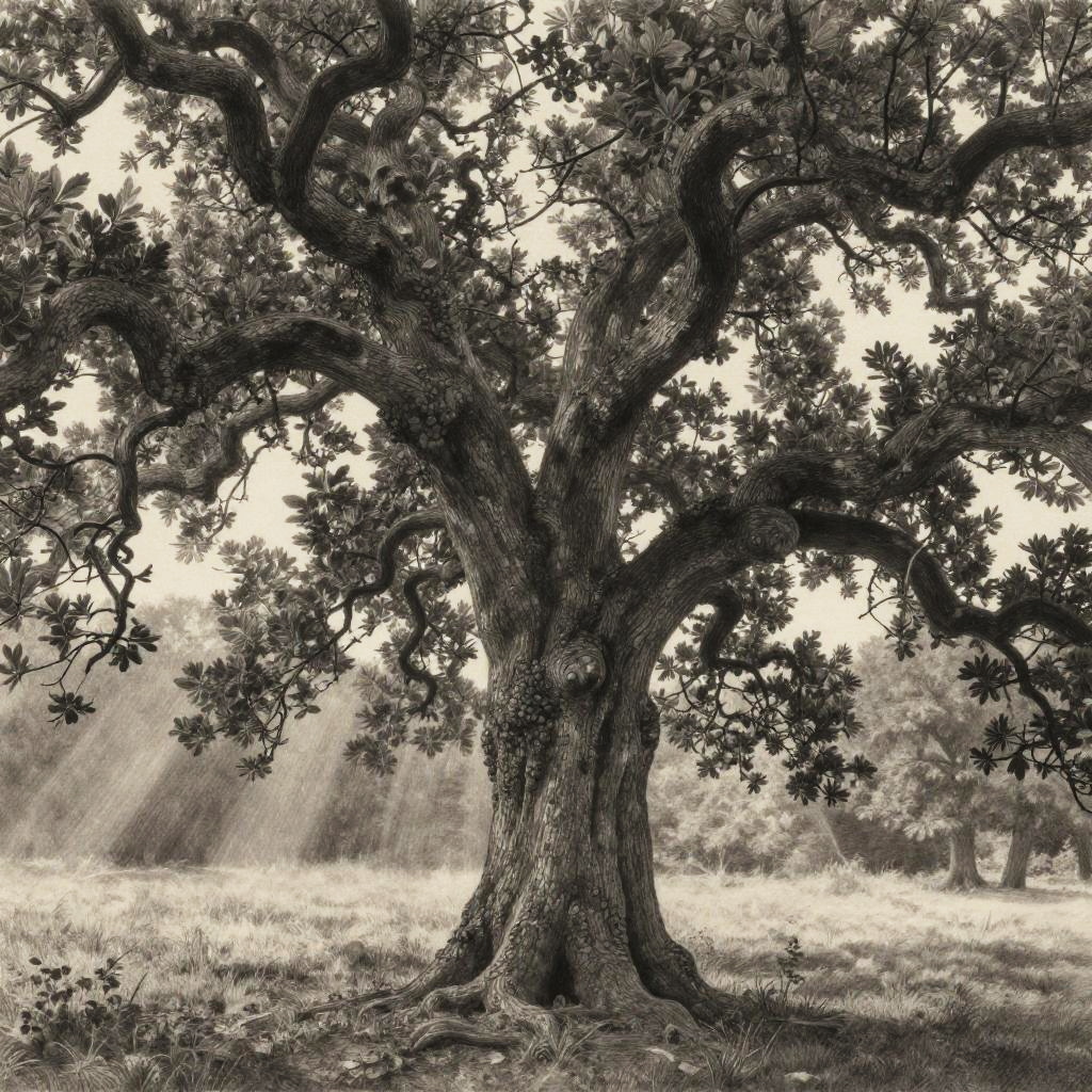 Hyperrealistic Ancient Oak Pencil Drawing