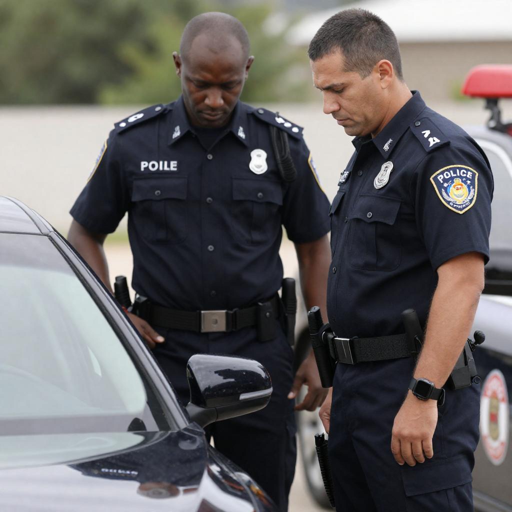 Bald Officer with Ambulance Stretcher