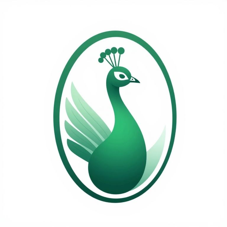 A stylized peacock emblem with a green bird, oval shape, and natural elements, representing a marketable logo.