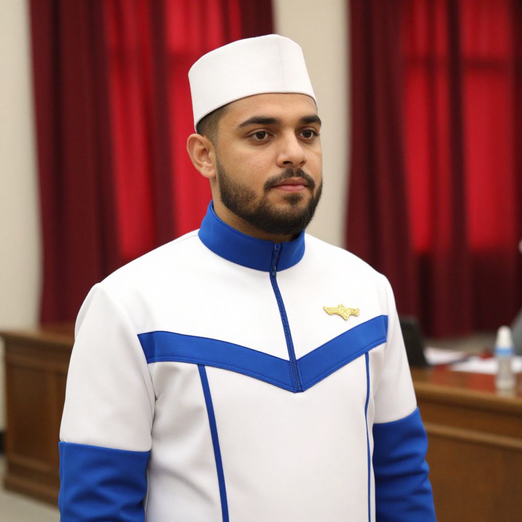 Bearded Man in Blue and White Uniform