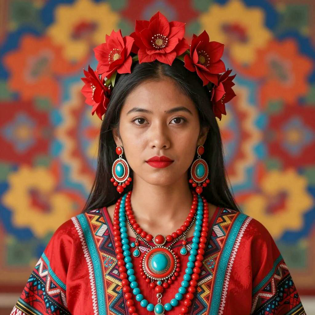 Vibrant Woman in Floral Headdress Portrait