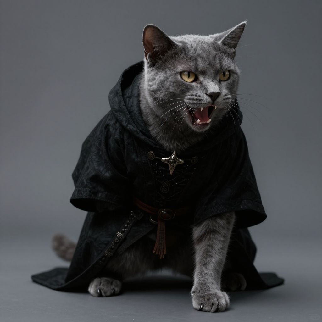 Feral Grey Cat Wizard in Robes