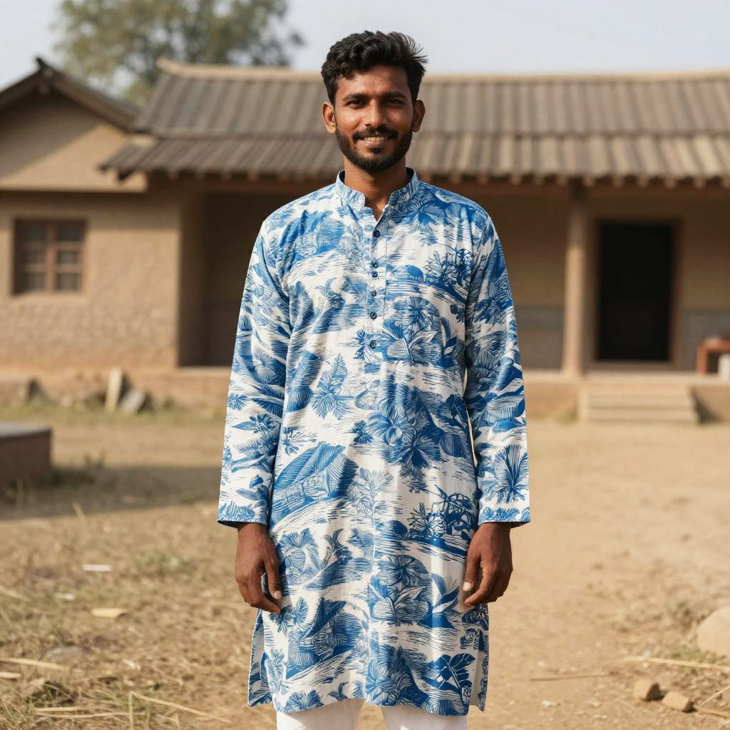 Vibrant Pathani Suit in Village Scene