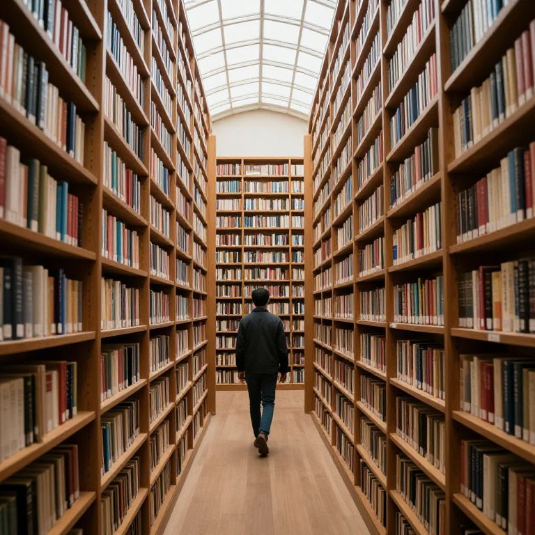 A hushed corridor of infinite knowledge stretches into the distance, its wooden shelves whispering tales of countless worlds, each book a portal to uncharted realms of imagination and wonder.