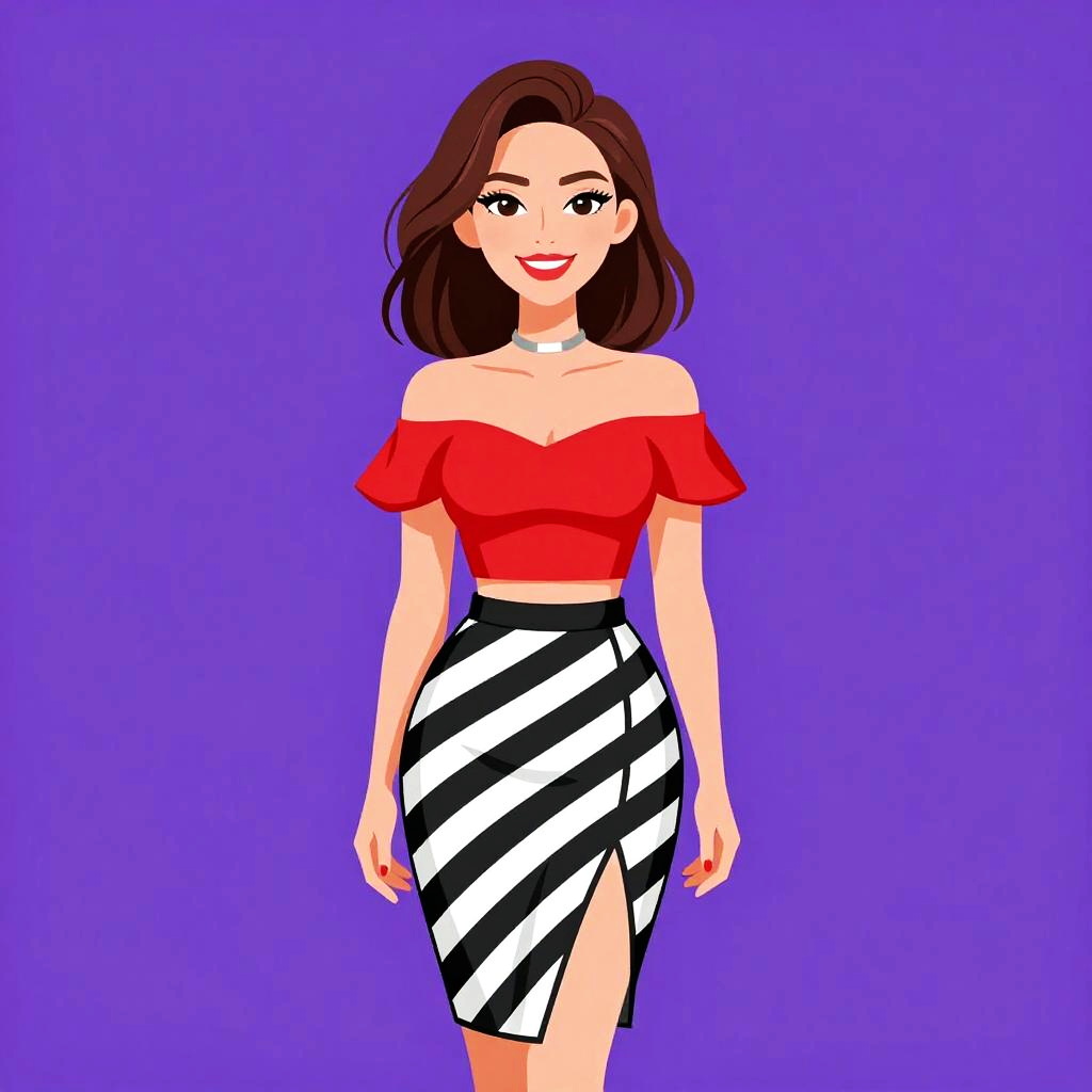 Smiling Chic Woman in Geometric Skirt