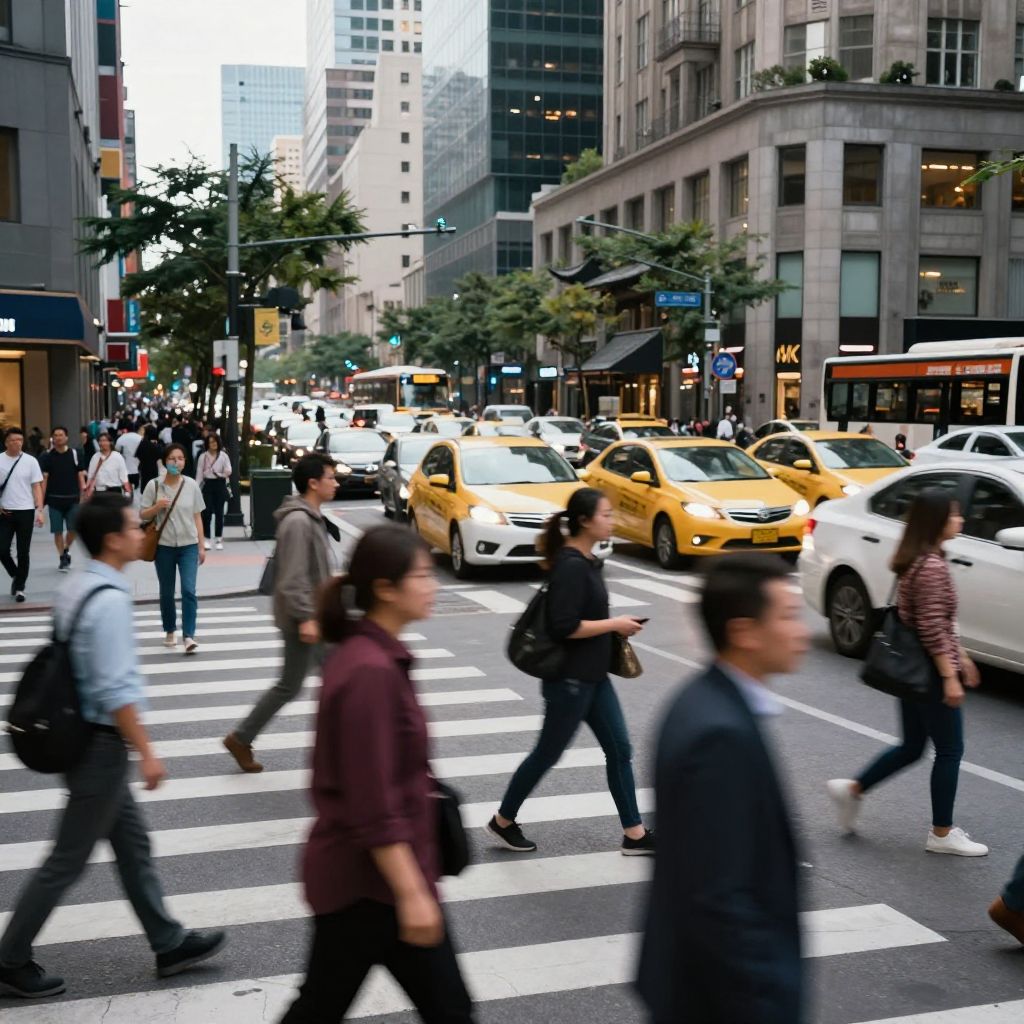 Bustling Asian City Intersection Rush Hour