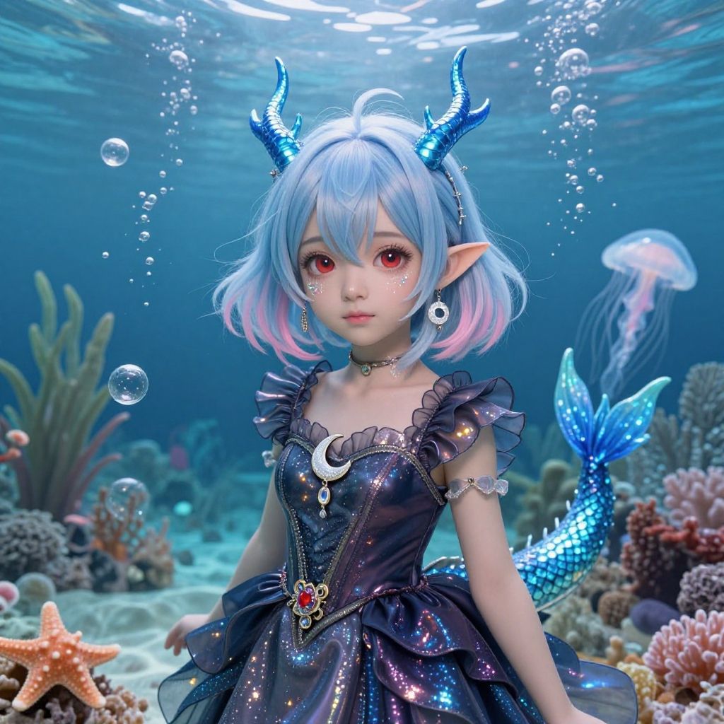 Ethereal Ocean Maiden in Bioluminescent Depths