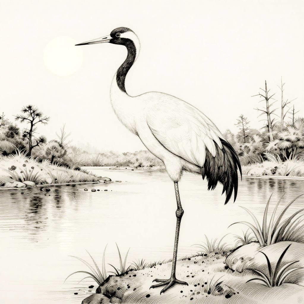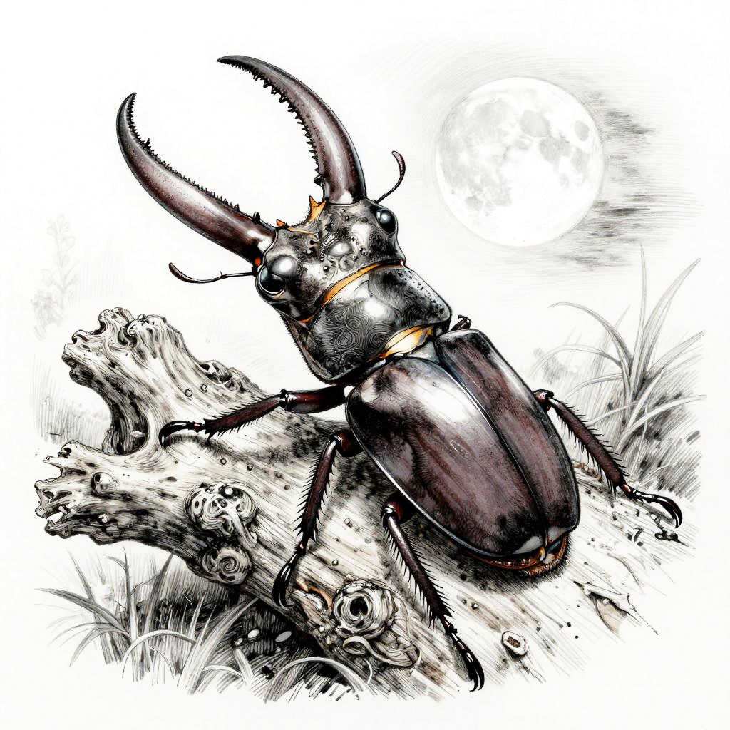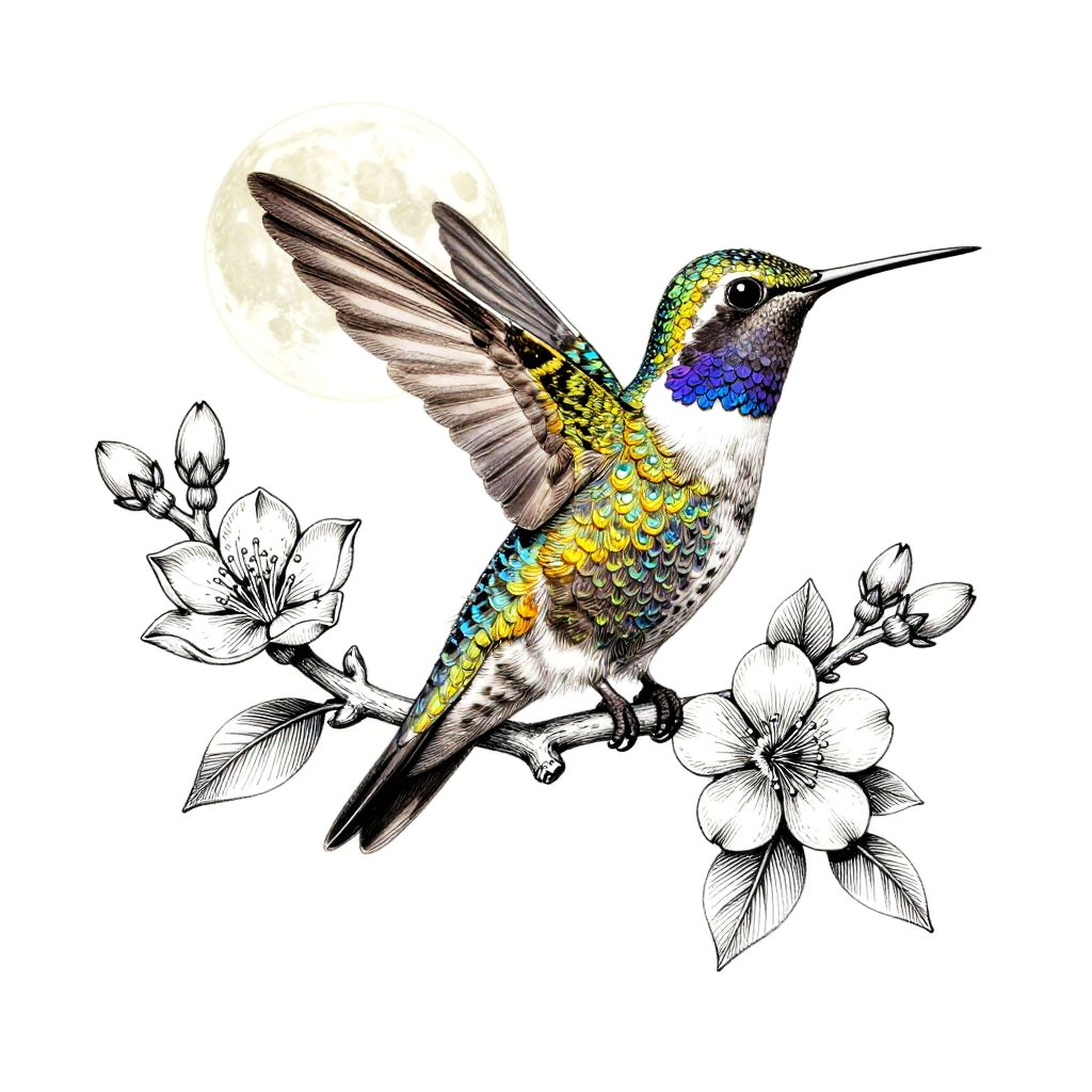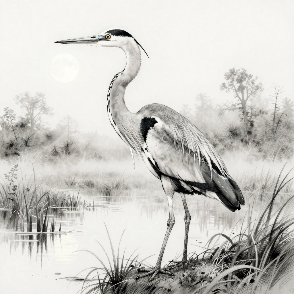 Intricate pen and ink drawing of a fierce hawk perched on a rocky cliff edge, with the moon glowing softly in the background, sharp talons gripping stone and intense stare.
