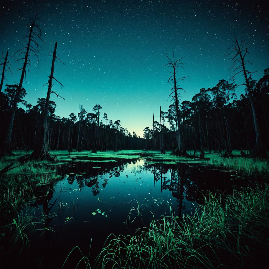 Ethereal Bioluminescent Swamp at Night
