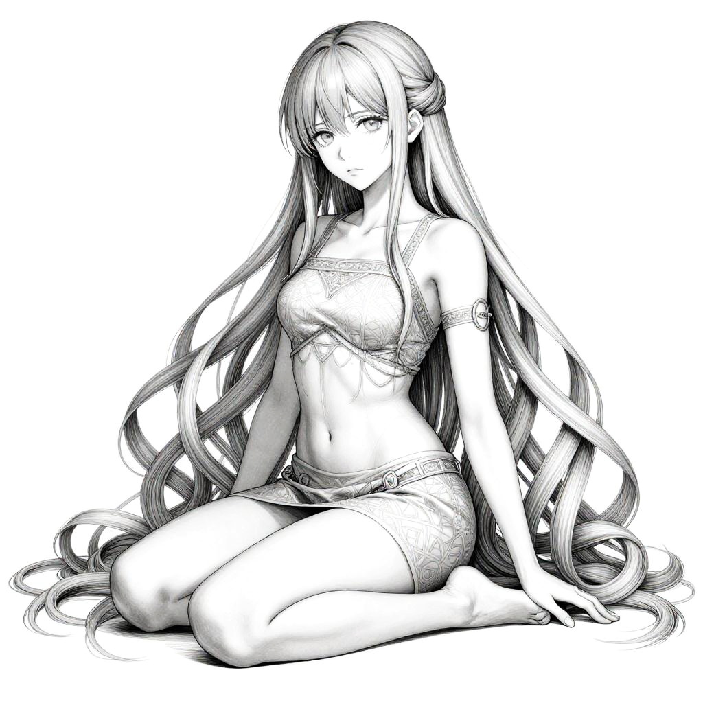 (masterpiece:1.3), (intricate:1), best quality, official art, 8k wallpaper, highly detailed, illustration, lineart, monochrome, cinematic light, monastarpact, 1 girl, (full body view:1.2), sitting down, Lineart, LineAniAF
