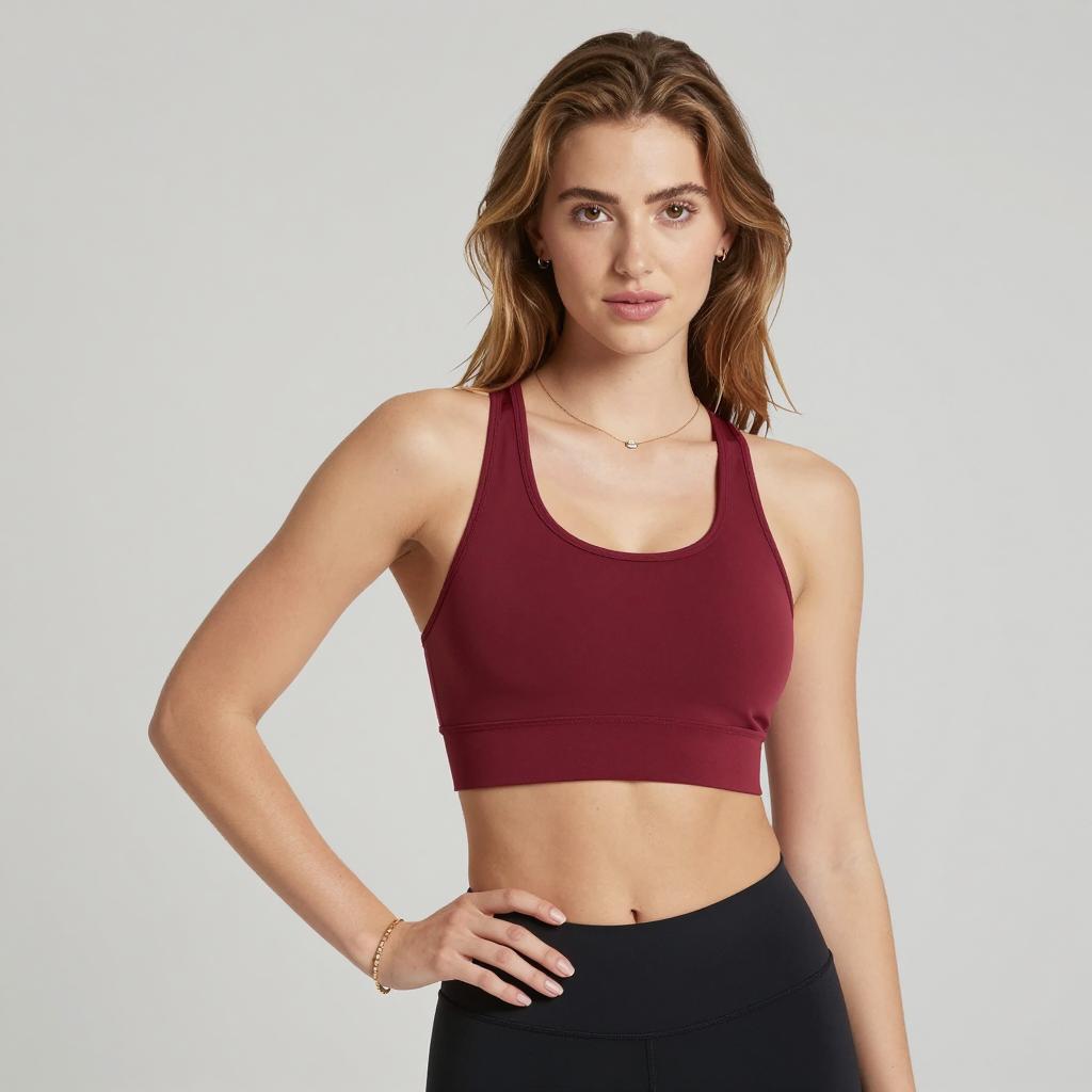 Athletic young woman with boxer braid hairstyle wearing a black sports bra and high-waisted leggings, posing confidently on a rooftop parking lot during golden hour. The urban skyline is visible in the background, highlighting an outdoor fitness and fashion editorial setting.