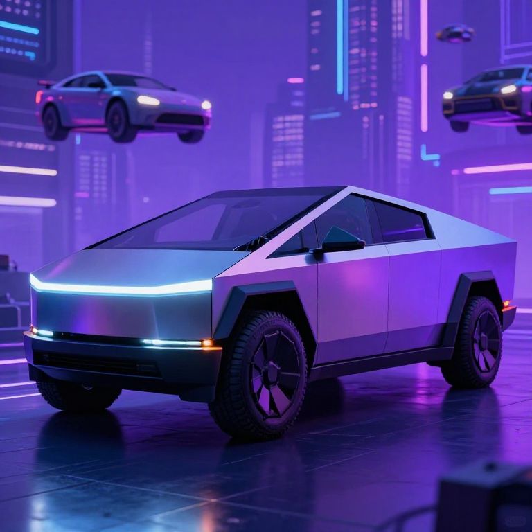 Photorealistic digital artwork of a sleek, futuristic silver car speeding through a neon-lit, rain-soaked city street at night.