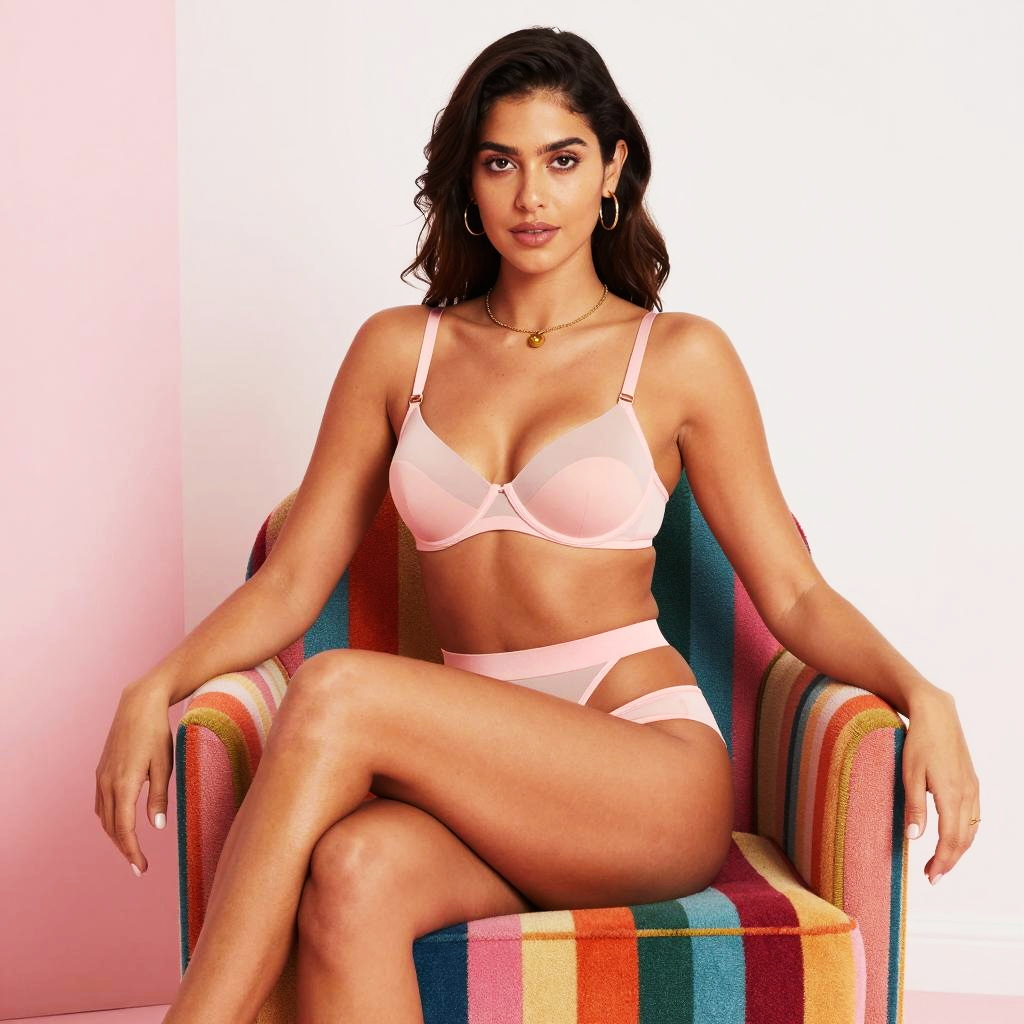 Colorful Floral Lingerie Portrait With Garterbelt
