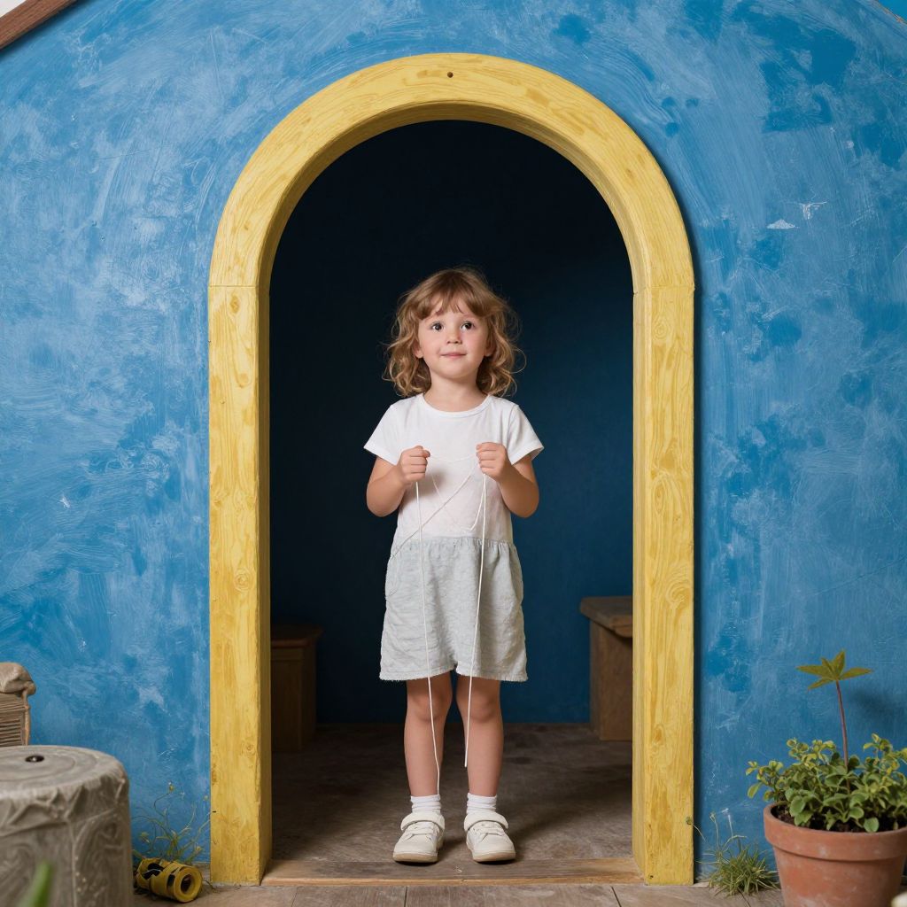 A child's innocence weaves threads of imagination, bridging the fantastical and the tangible, as they stand at the threshold of wonder, where the whispers of curiosity and the echoes of possibility converge.