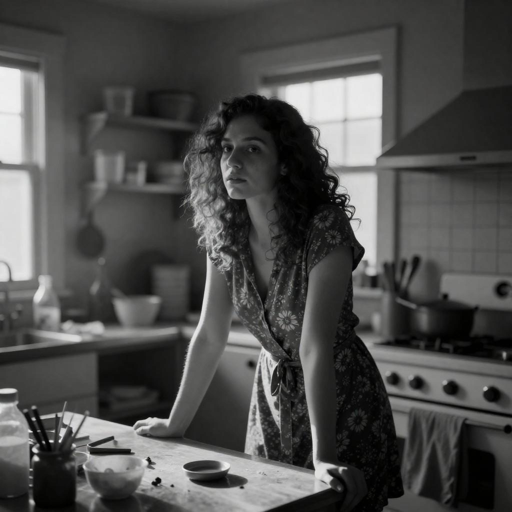 Black-and-White Woman Holding Money at Desk