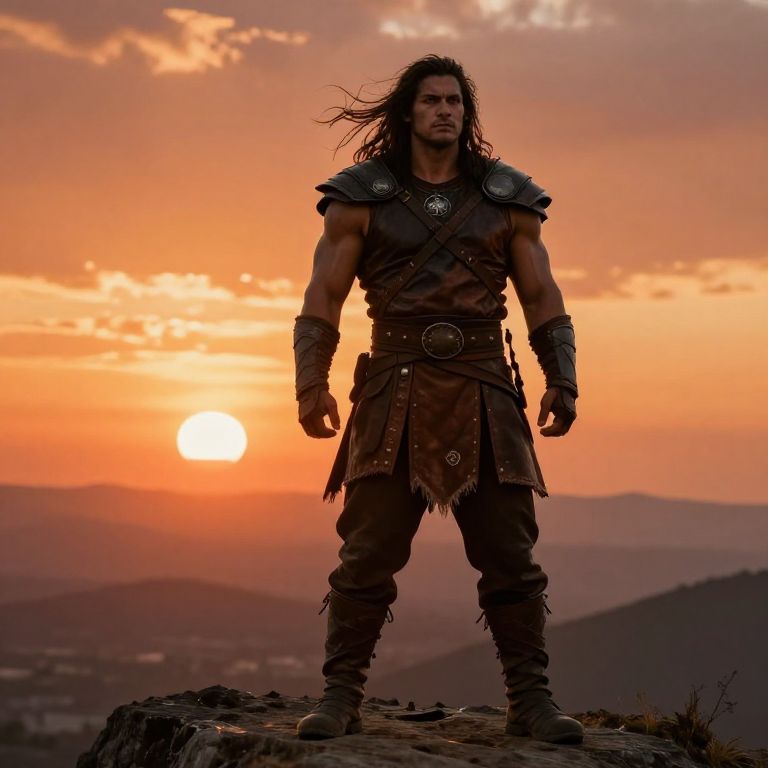 Embracing the spirit of adventure and resilience, a guardian stands poised amidst the quiet glow of twilight, embodying the eternal flame of hope and courage.