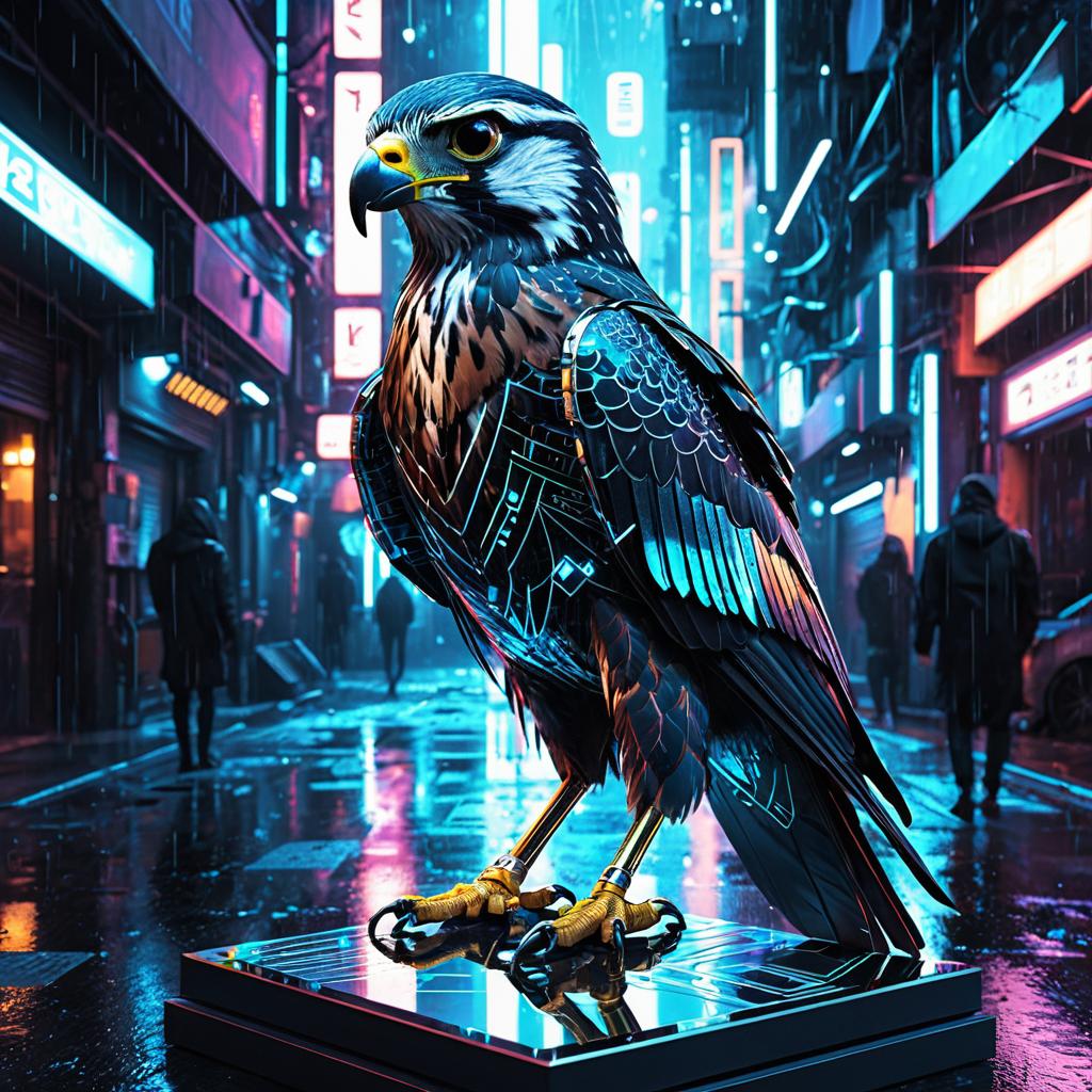 High-Tech Holographic Falcon in Cyberpunk Alley