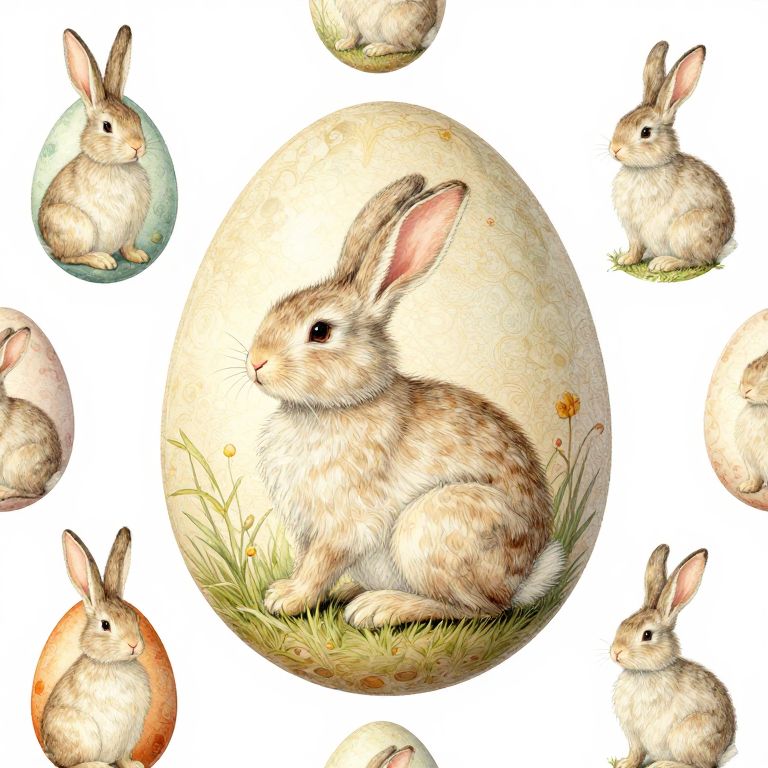 Editorial Illustration Illustration by Leo Lionni, easter pattern, ultra detailed, paper, colorful, clean lines, no text, Easter Egg, bunny, white background,